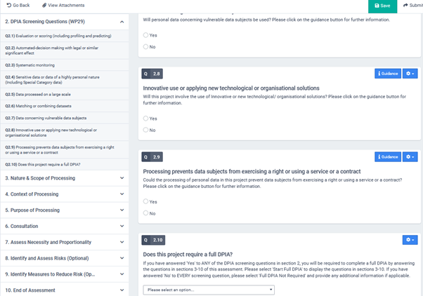 A DPIA register along with three new DPIA templates have been added to the Privacy Module. The pre-populated DPIA register, and assessment templates are loosely based on the ICO’s DPIA template. The three new assessments are listed below: