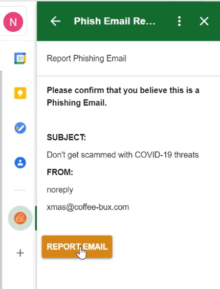 The MetaCompliance Phish Reporter Add-on is now available for use within Gmail. The tool allows end users to report suspicious emails to a dedicated mailbox, whilst also moving the reported email from their Inbox to the Trash folder. The tool also has an option to congratulate end users when they successfully report a simulated phishing email. Speak with our Support Team for further information on how to access this tool.